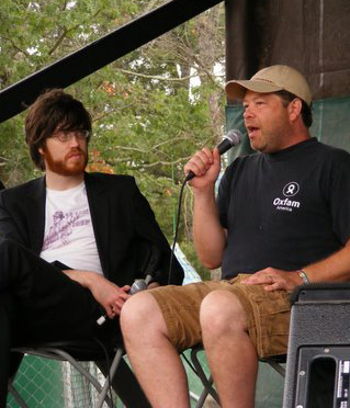 The panelist to my right happened to be Will Sheff from Okkervil River, a band I admire greatly. Before the panel, Sheff and I killed a little time in the “Green Room” tent adjacent to the stage by talking about his band’s efforts to “green” their own tours and to encourage fans to ride bikes to their gigs to slash gig-related carbon footprints. Sheff mentioned that they didn’t start those initiatives because of any particular movement or campaign, but rather because they personally just felt that the by-products of touring were wasteful. (Performer Ben Sollee may be one of the few musicians to complete a full tour on a bike, when he pedaled 330 miles to Bonnaroo with his cello.)