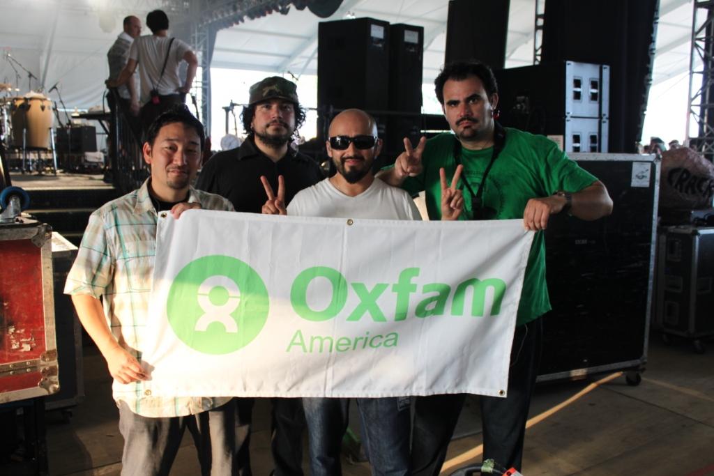 Artists for Oxfam Ozomatli pose with the Oxfam banner just moments before taking the stage. They’re just one of many bands and musicians who support Oxfam’s work around the world. Want more Bonnaroo? Check out our album on Facebook.