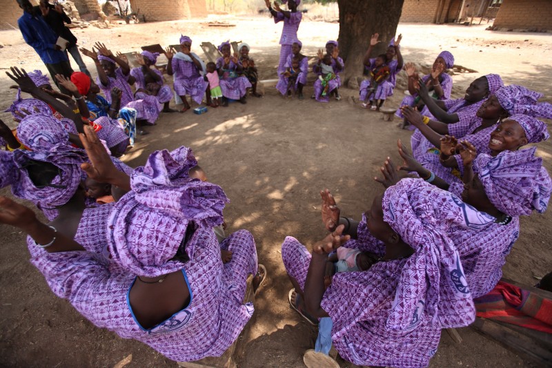 Women from the Banakoro, Mali, village Saving for Change group–dubbed Sabougnuma, or “good deed”–hold their weekly meeting. I like how this colorful photo really captures the community spirit of the savings groups, where women work together to help each other save money and start small businesses.